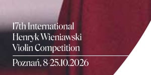 Sales of subscription tickets for the 17th Henryk Wieniawski International Violin Competition, which will take place in Poznań from 8–25 October 2026, have officially begun. Two types of subscription tickets are available: for all competition auditions (Stages I-IV) and for the entire competition – auditions and concerts. Click to read more about this event...